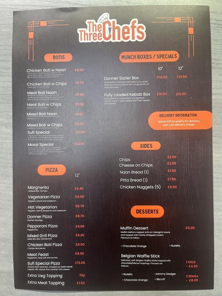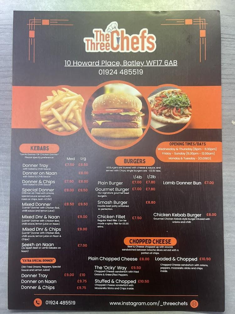 Nestled at 10 Howard Place, Batley WF17 6AB, The Three Chefs thrives in a town known for its rich culinary offerings. It’s located conveniently for locals and visitors, close to the lively activity of the Batley area. This restaurant captures a blend of cultures through its menu, attracting a diverse crowd that includes university students looking for hearty meals and tourists seeking a taste of the local flavor.